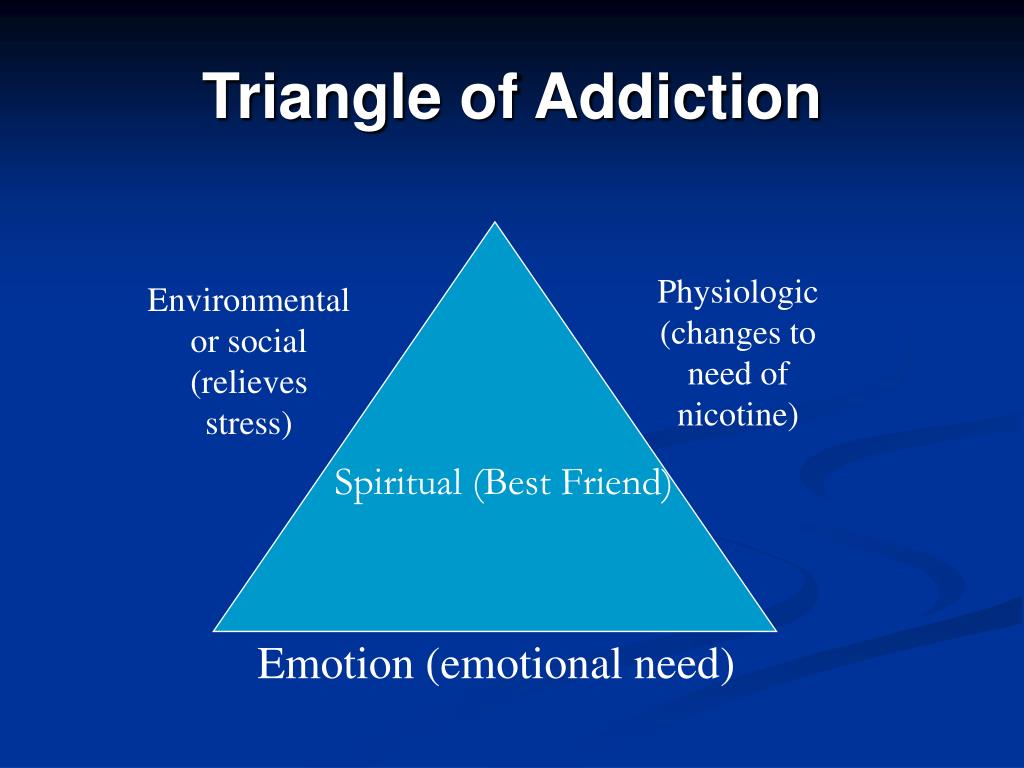 All of our defects of character are forms of these three reactions triangle of self obsession. It's a concept embraced by narcotics anonymous, and it tells us that people who become addicted to prescription pain pills and heroin fall .